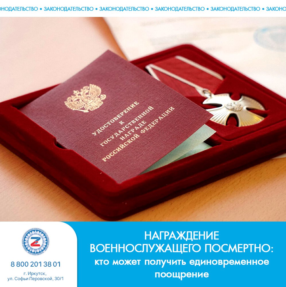 В случае гибели (смерти) военнослужащего, награжденного государственной наградой Российской Федерации или поощренного Президентом Российской Федерации, Правительством Российской Федерации, а также в случае награждения государственной наградой Российской Федерации посмертно единовременное поощрение выплачивается членам семьи военнослужащего. Основание: Федеральный закон от 7 ноября 2011 г. № 306-ФЗ «О денежном довольствии военнослужащих и предоставлении им отдельных выплат», статья 3, …