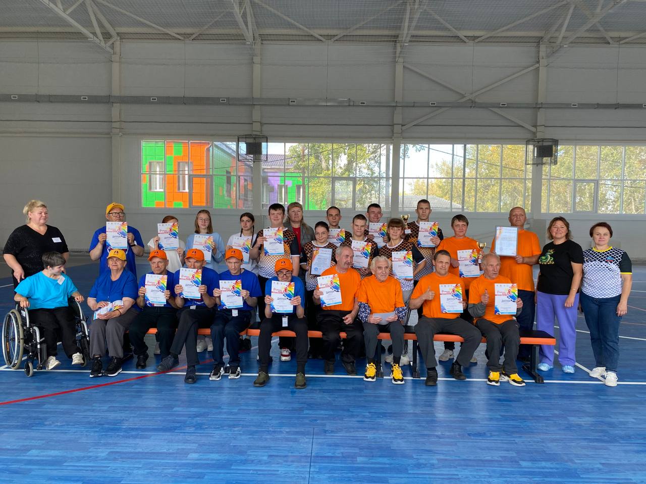 В этот золотистый осенний день более 25 участников попробовали свои силы в спортивных упражнениях и конкурсах, адаптированных под физические возможности участников спортивного праздника. Были представлены спортивные испытания на точность, быстроту движений, а механика их выполнения была направлена на развитие всех групп мышц.
