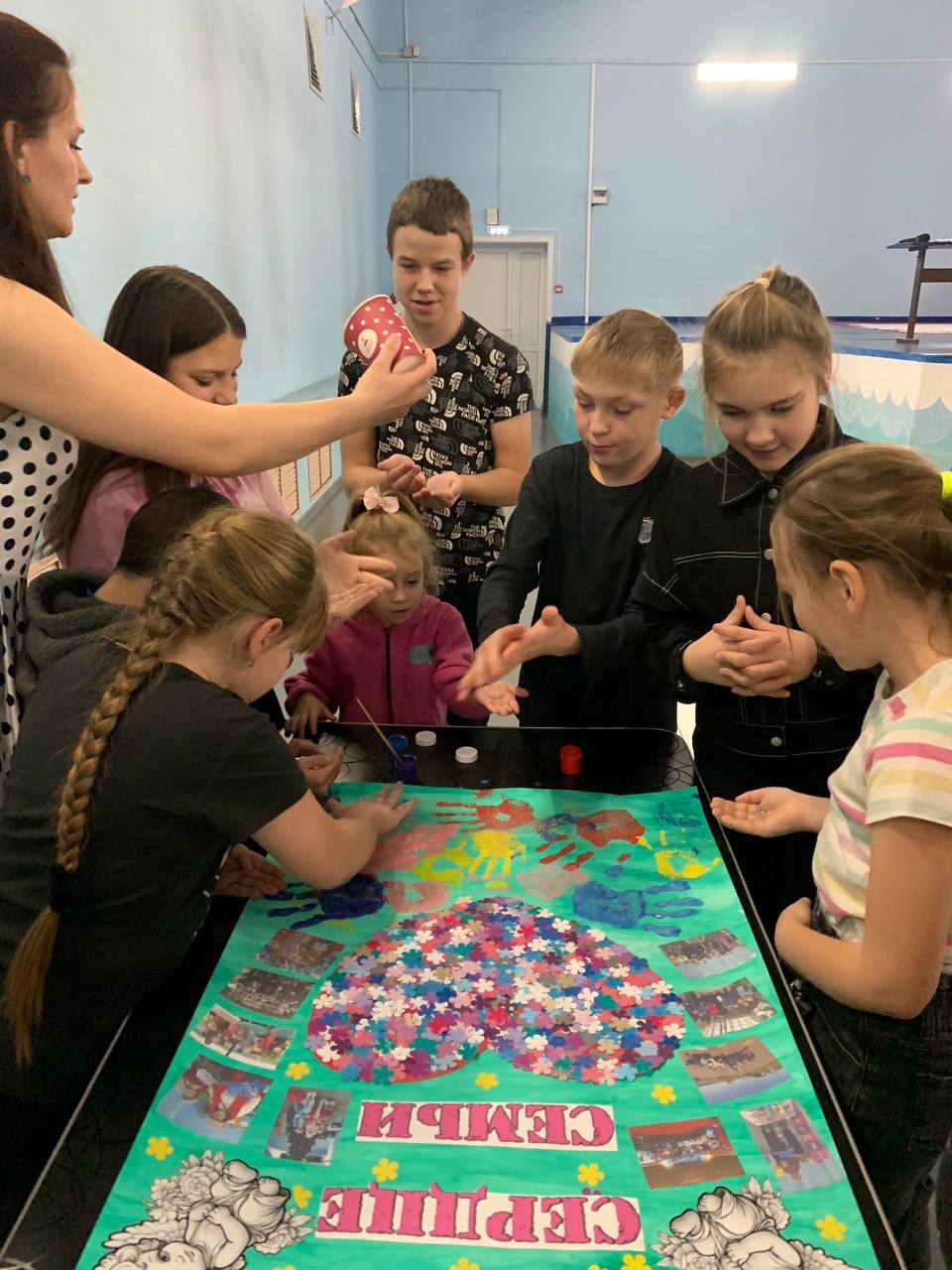 В начале мероприятия гостям рассказали об истории этого праздника в нашей стране, прозвучали слова поздравления и благодарности мамам. Дети отгадывали загадки о профессиях женщин, говорили ласковые и добрые слова комплиментов своим мамам, а затем с удовольствием участвовали в мастер-классе по изготовлению коллажа «Весь мир на ладонях у мамы».