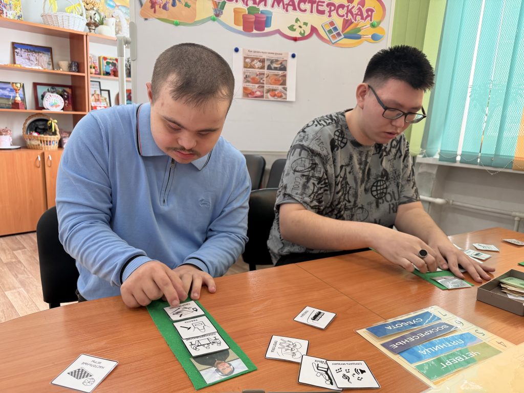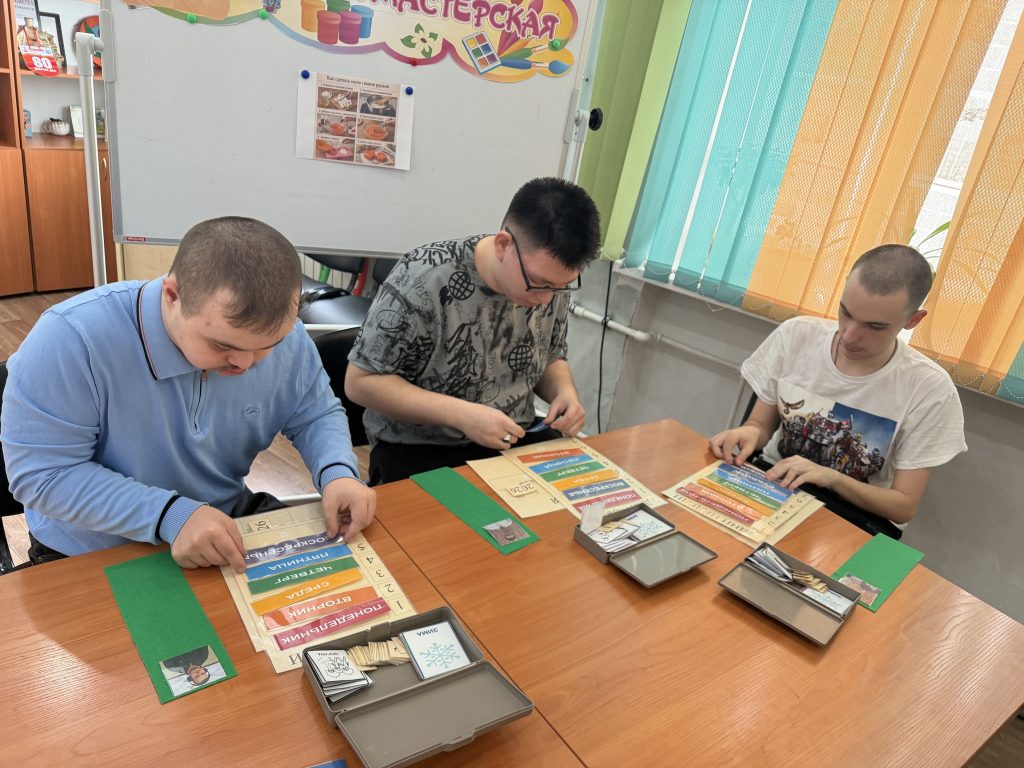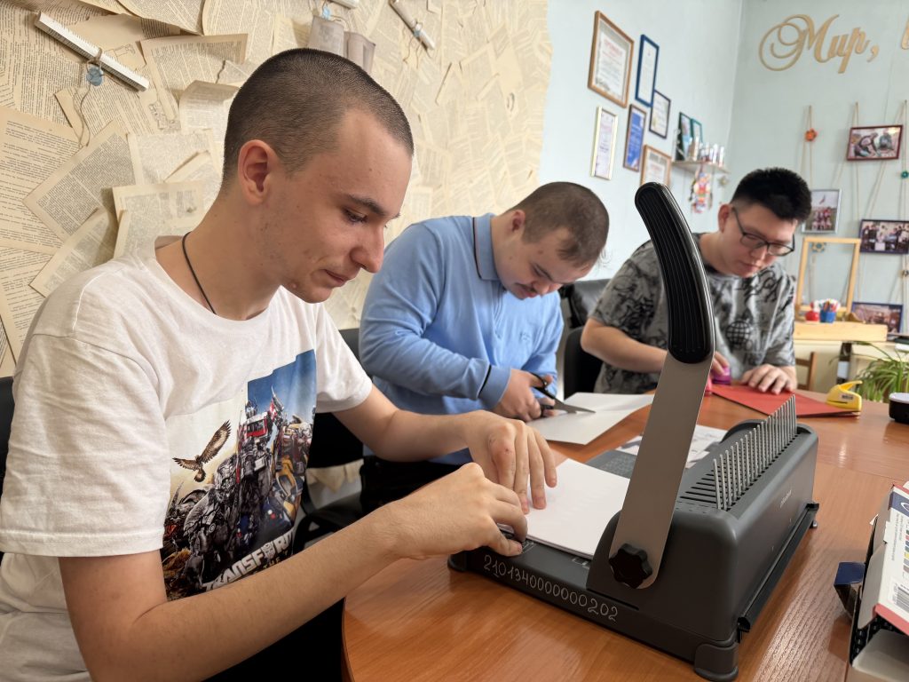В мастерской «Малая полиграфия» участники социальной занятости показали, как важно планировать и делить сложную задачу на простейшие операции, доступные для каждого человека. При изготовлении блокнота специалист задействует ребят, они вместе распределяют обязанности, выполняют посильную работу и достигают общего результата.