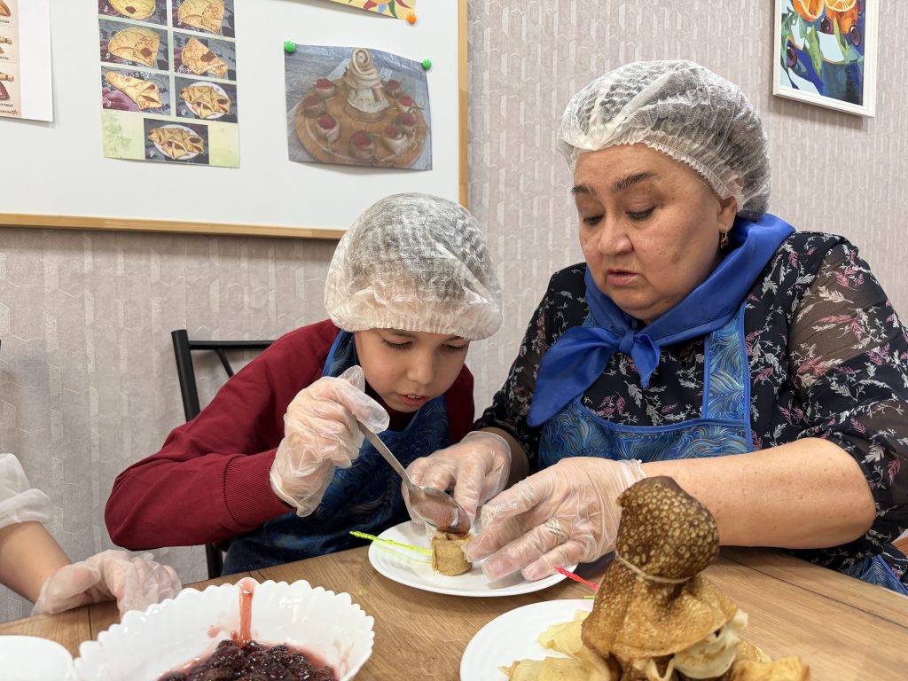 Масленичная неделя – это время тепла, гостеприимства и, конечно же, золотистых блинов. В ОГБУ «Управление социальной защиты и социального обслуживания населения по городу Черемхово, Черемховскому району и городу Свирску» в уютной кулинарной атмосфере прошел мастер-класс для детей с ограниченными возможностями здоровья. «Серебряный» волонтер -Татьяна Александровна в рамках проекта «Бабушки всему научат» встретилась с ребятами, чтобы передать им секреты идеального масленичного угощения.