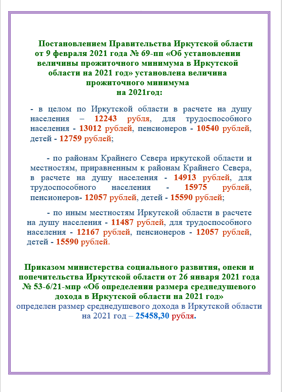 Величина прожиточного минимума на 2021 год Опубликовано 11.03.2021Обновлено на 23.03.2021от PresscenterРубрики:Объявления Presscenter
