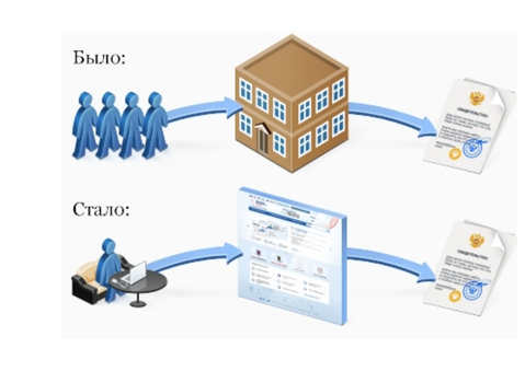 Чтобы получить услугу в государственном учреждении, нужно узнать его расписание, прийти с документами, дождаться своей очереди, заполнить заявление. Через интернет то же самое можно сделать в любое время и в любом месте, без ожидания в очереди и контакта с посторонними людьми.
