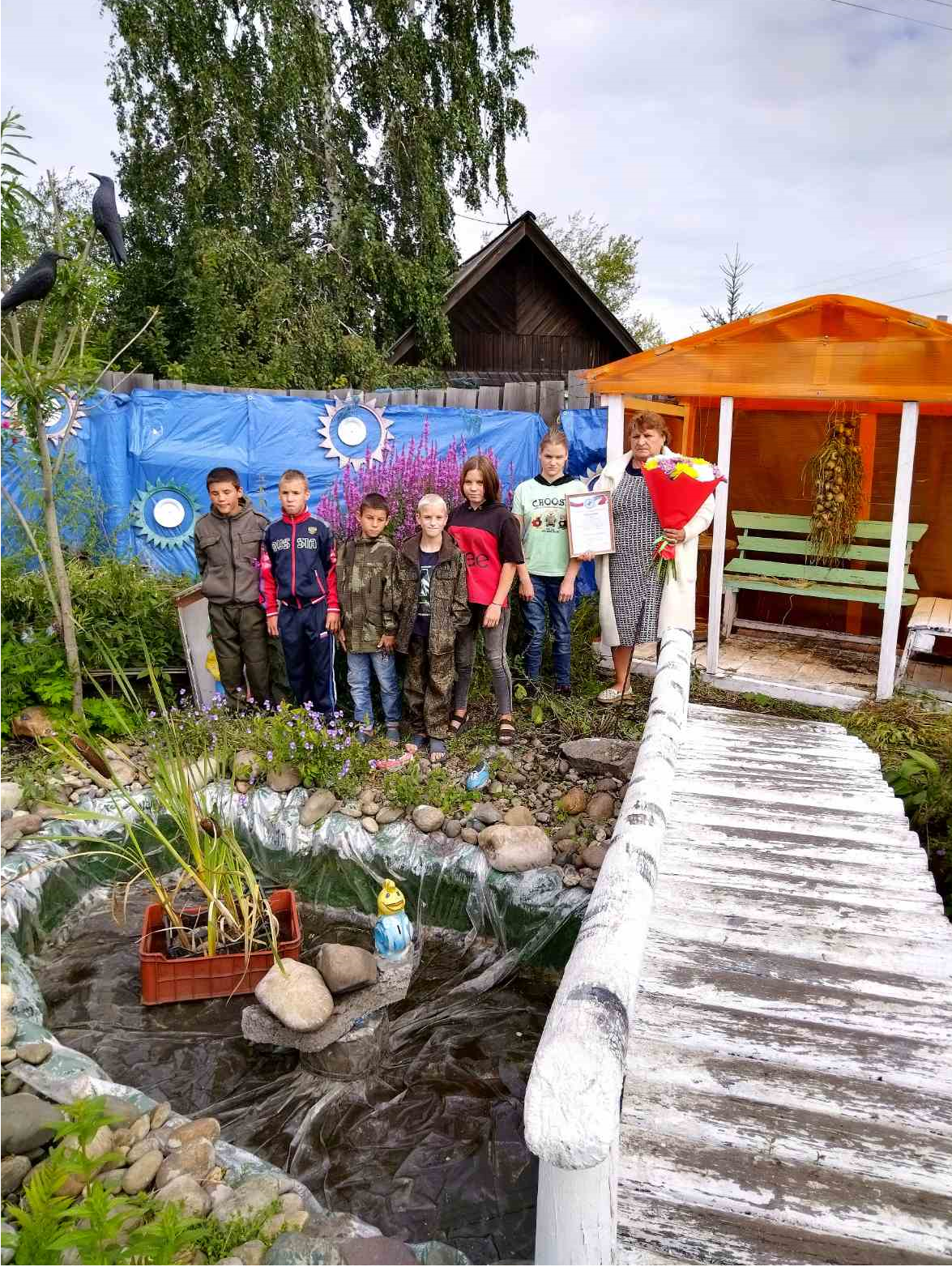Усадьба Елены Александровны находится в черте города. Дом на улице выделяется своим ярким оформлением. В зоне отдыха имеется беседка и различные водоёмы с живыми черепахами и раками. В водоёмах растут декоративные растения. Зона отдыха оформлена скульптурами ручной работы, которые Елена Александровна сделала вместе со своими детьми. Елена Александровна много сил и времени уделяет трудовому воспитанию детей на приусадебном участке.